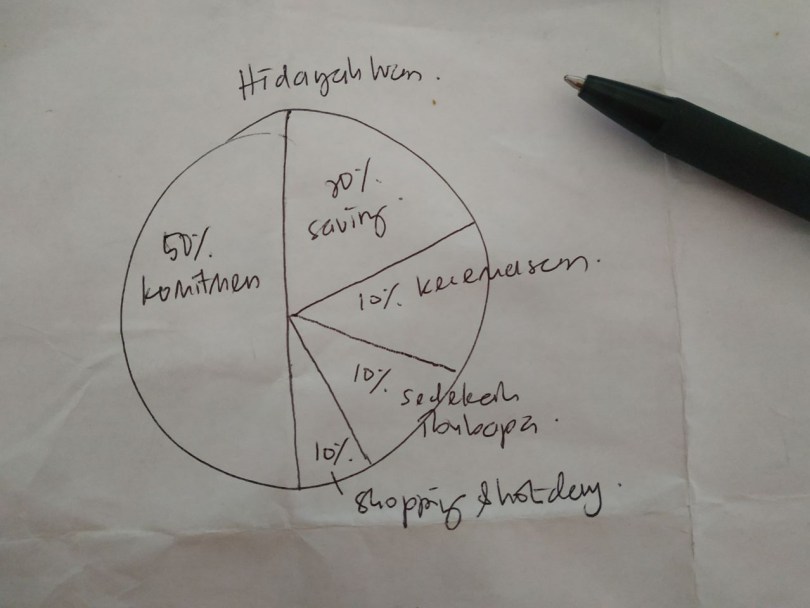 Taraa… so cukupkan duit untuk hidup senang malah ada duit simpanan lagi. Percent untuk setiap bahagian ini sangat penting untuk kita ikut ye. Jangan sesekali guna duit sedekah untuk shopping tudung baru.