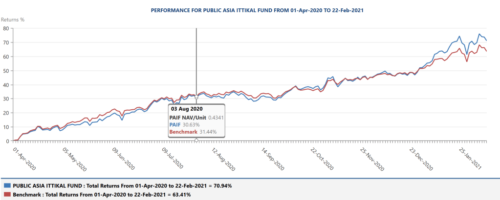 Katakah ahmad melabur di unit trust (PAIF) sebanyak RM10,600 pada 1/4/2020 dan menjual kesemua unit trustnya pada 3/8/2020. Keuntungan Ahmad adalah sebanyak 30.63%. Pada permulaan pelaburan unit trust ada service caj 4.75% x RM10,600 = RM503.50. Tetapi jumlah yang dilaburkan tetap RM10,600 bukanlah jumlah selepas ditolak caj ye.